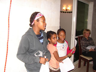 Our younger carol singers. Ijoema, Hanan and Okara.